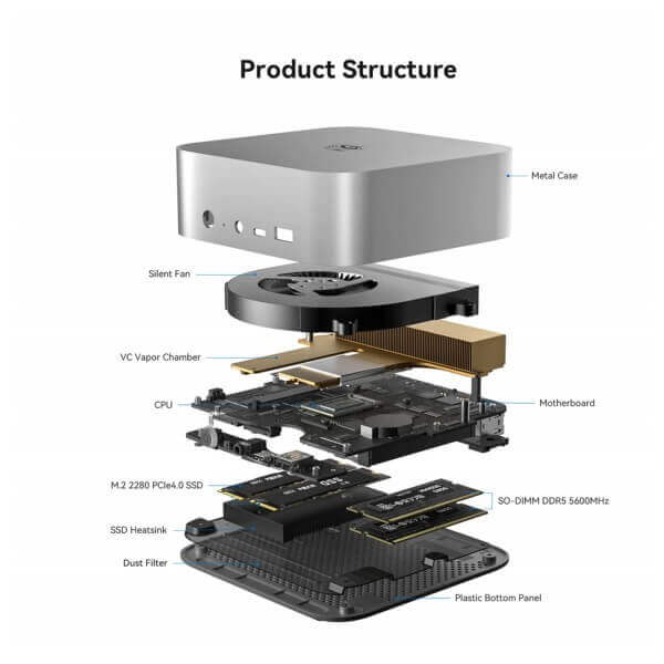 Beyond its impressive processing and graphics capabilities, the Beelink SEi14 excels in storage options. It supports up to 96GB of SODIMM DDR5 5600MHz RAM and up to 8TB of M.2 PCIe 4.0 x4 SSD storage, offering lightning-fast performance and ample space for large projects, video editing, and gaming. Despite its compact size, this mini PC delivers exceptional power and storage capacity, striking the perfect balance between portability and performance. Lightweight and easy to transport, the Beelink SEi14 is designed to enhance productivity and keep you organized, whether at home or on the go. Tailored for both personal and professional use, this versatile mini PC provides a dependable and powerful solution for a wide range of computing needs.