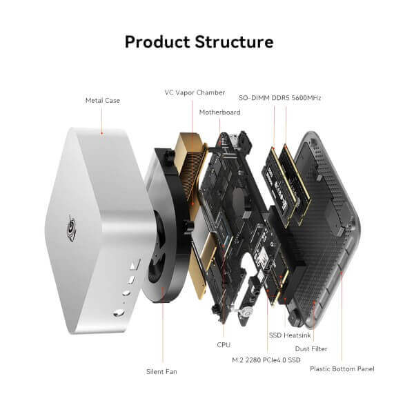 The Beelink SER8 Kenya Mini PC comes powered by the AMD Ryzen 7 8845HS Processor, which combines a CPU, GPU, and NPU into a single unit. With the advanced Ryzen AI Engine, this processor is optimized to handle diverse AI frameworks and large-scale models, delivering seamless performance for complex AI workloads and demanding tasks. Its cutting-edge AI acceleration and hardware ray-tracing capabilities transform your computing experience, whether you’re managing multiple tasks at work or diving into graphically rich gaming. For in-depth architectural details, consulting AMD’s official resources is recommended.