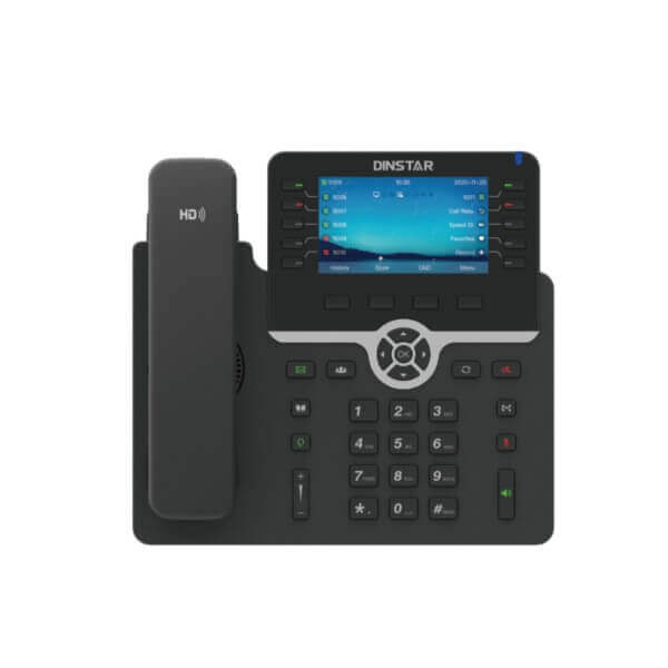 The Dinstar C66GP Kenya is a feature-rich and versatile HD SIP phone crafted to meet the needs of high-end business environments. Combining an elegant appearance with reliable performance, it adapts seamlessly to a wide range of professional settings. The phone features a 4.3-inch 480 x 272-pixel graphical LCD with backlight, delivering clear visual effects and an intuitive interface for effortless navigation. Designed to provide an enhanced communication experience, it offers superior HD voice quality along with a wide array of system functions to address diverse business requirements. Equipped with dual Gigabit Ethernet ports, the C66GP ensures fast connectivity, easy installation, and flexible configuration. Supporting up to 20 SIP accounts and 6-way conferencing, it enables smooth collaboration and efficient call handling. Its seamless integration with IP PBX systems enhances productivity, making it an ideal choice for enterprises seeking advanced telephony solutions.