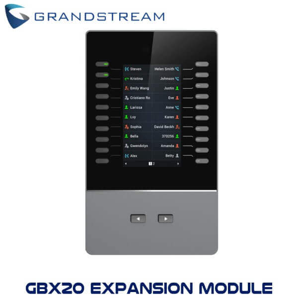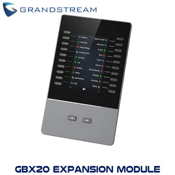 - The Grandstream GBX20 Expansion Module Kenya is equipped with 20 dual – colored extension keys and 2 arrows which allow for page switching so as to display 40 lines on the large clear screen. Other advanced features of the expansion module include BLA (bridged line appearance)/SCA (shared call appearance), BLF (busy lamp field, standard or eventlist), Call Park/Pick-up, Speed Dial, Presence, Intercom, and conference/ transfer/forward. The Grandstream GBX20 Expansion Module Kenya is therefore a highly efficient device which boosts productivity in busy offices by managing high volumes of incoming calls.