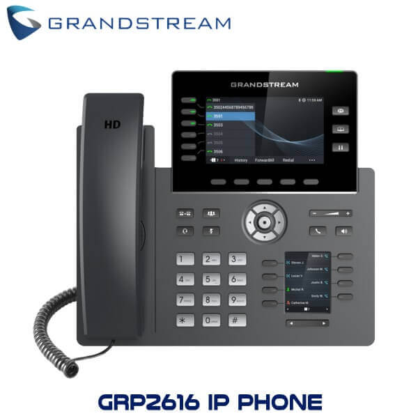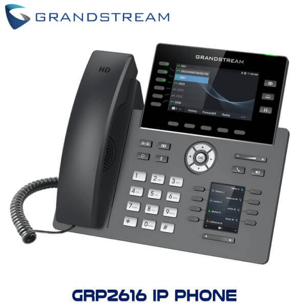 - The Grandstream GRP2616 IP Phone Kenya boasts of a main 4.3” color-screen with swappable face plates and a 2.4” color LCD secondary button screen for an enhanced visual clarity. The display screen also gives the user a quick access to details since it is equipped with programmable backlit line keys and interactive soft buttons that guide you through all call features and functions.