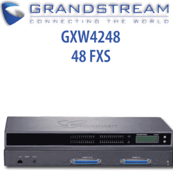 The Grandstream GXW4248 VoIP Gateway is a next generation high-performance high-density VoIP gateway that is completely compliant with SIP standards and mostly interoperable with many VoIP systems, analog PBX and phones on the market. The Grandstream GXW4248 VoIP Gateway features 48 FXS analog telephone ports, rich telephony functionalities, wonderful voice quality, easy provisioning, advanced security protection, flexible dialing plans, and superb performance in handling high volume voice calls.